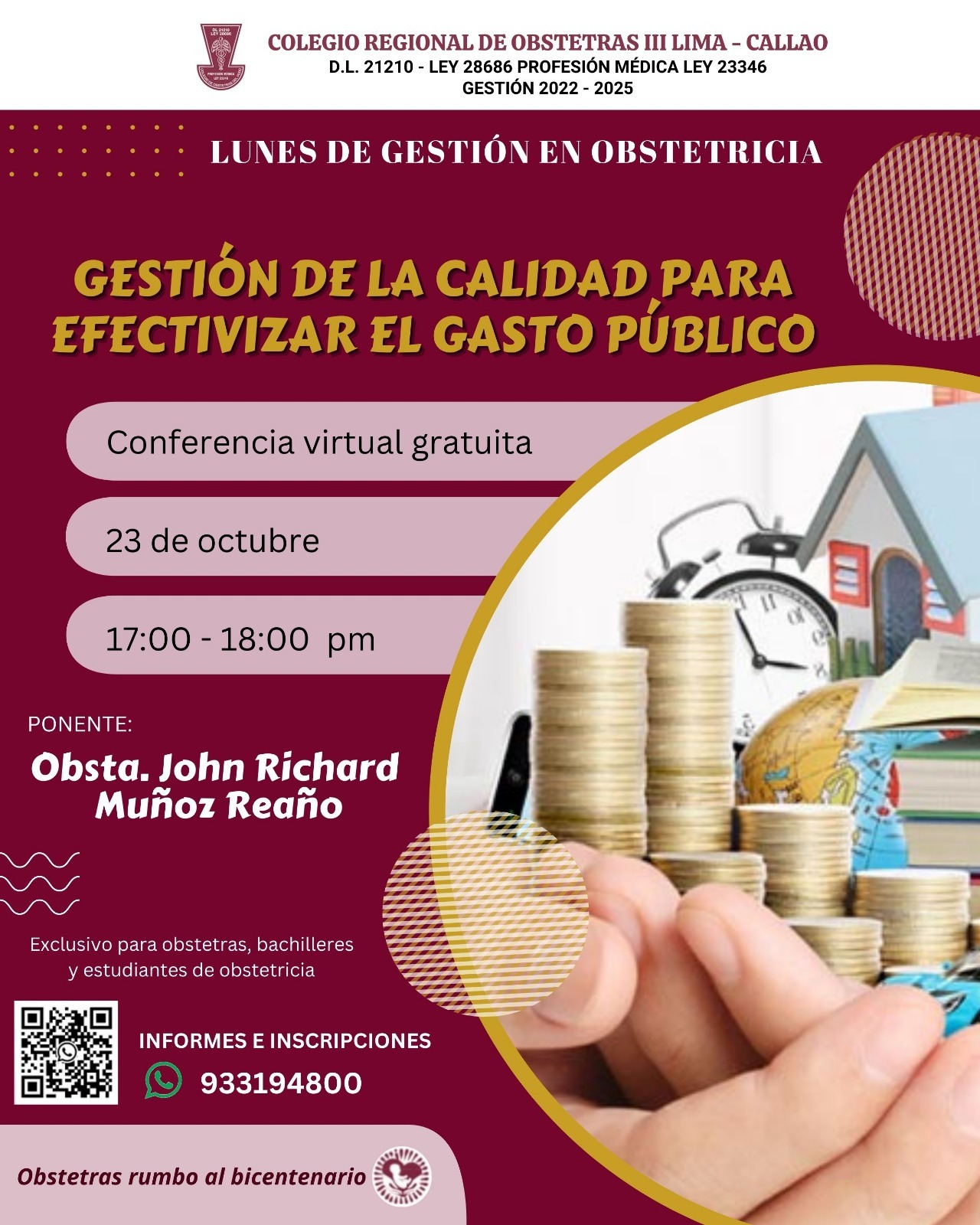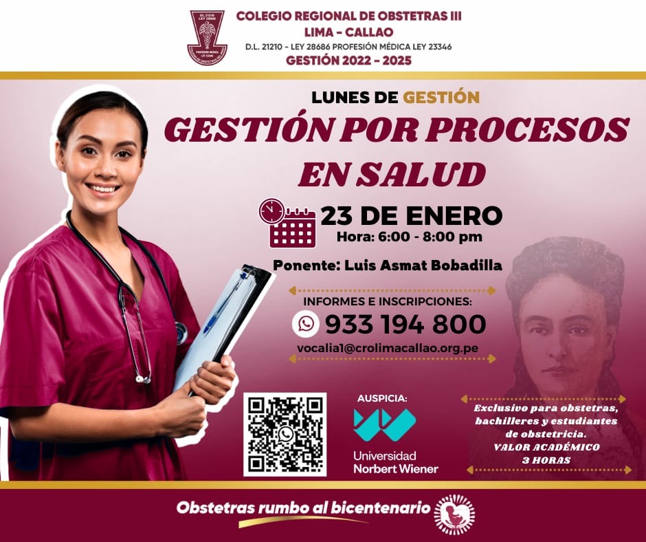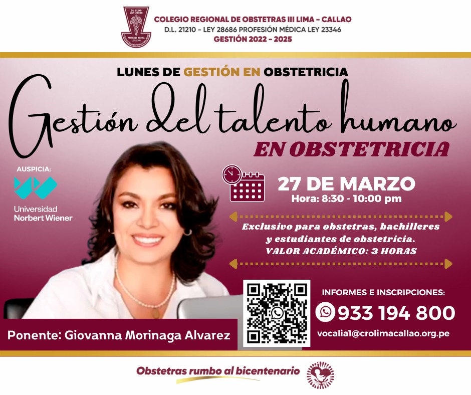 Obstetras, los invitamos a participar del "Lunes de Gestión, este 23 de Octubre de 5:00pm - 8:00pm.