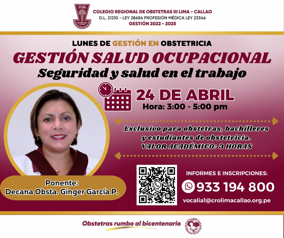 Obstetras, los invitamos a participar del "Lunes de Gestión, este 24 de Abril de 3:00pm - 5:00pm.