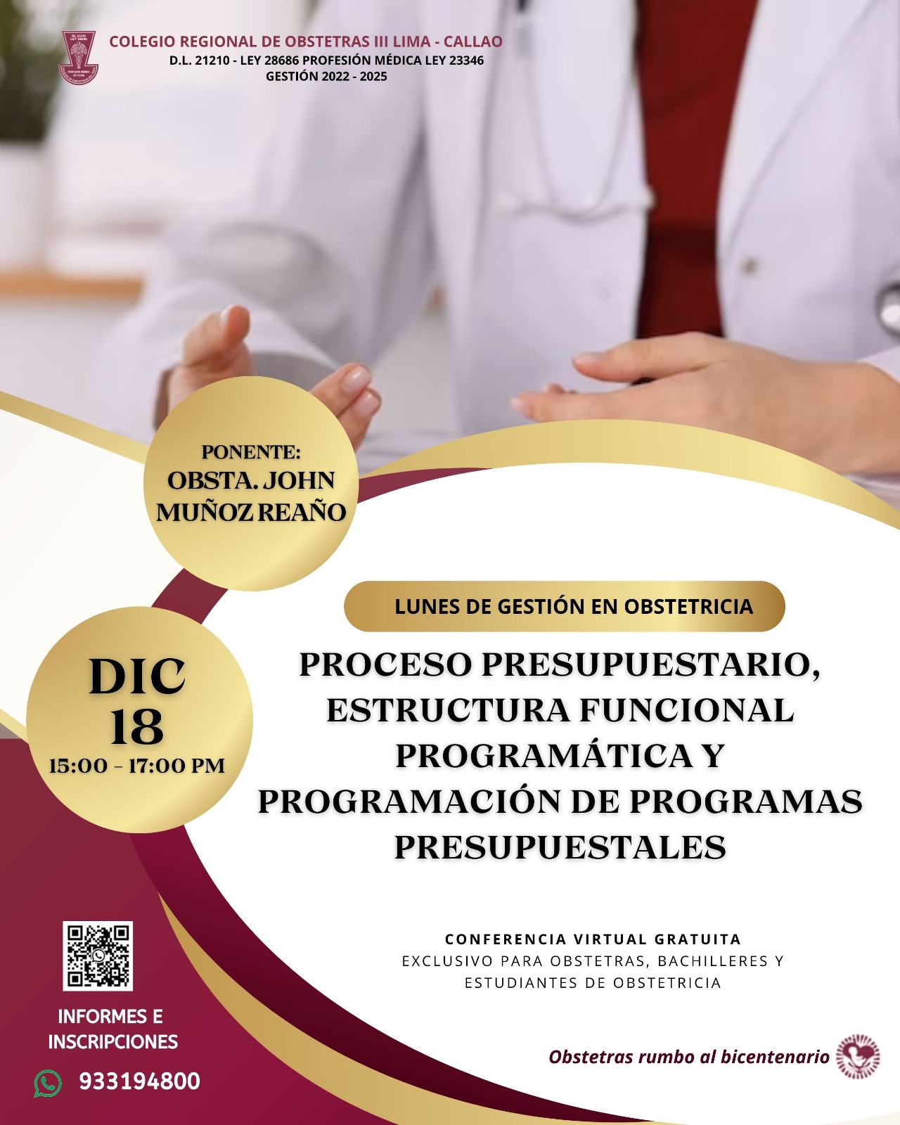 Obstetras, los invitamos a participar del "Lunes de Gestión, este 18 de Diciembre de 3:00pm - 5:00pm.